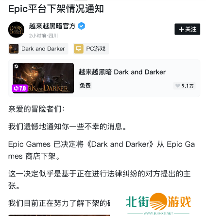 今日,暗黑地牢生存游戏《Dark and Darker》官方IRONMACE发布了新公告,称本作已在Epic平台下架。官方公告中提到:“这一决定似乎是基于正在进行法律纠纷的对方起初的主张。”