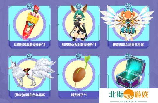 新服登录即送的好礼中还有两份特别的时光礼物。其中使用“时光种子”,轻松种植,终极大奖可在以下三项道具奖励中任选其一:[活动]黯淡黑色挚友星*2000、冰封之古代根源*1、10强梦之尽头主/副武器选择袋子*1。“时光宝盒”可以通过完成任务获得史诗级+10变换一套(14件),包含防具、武器、饰品、三件套。