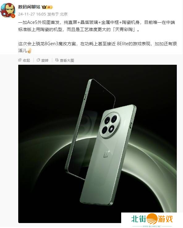 近日,数码领域的知名博主@数码闲聊站发布了一组引人瞩目的照片,揭示了即将面世的一加 Ace 5的独特外观设计。据悉,这款中端机型在标准版上就大胆采用了陶瓷材质,命名为“天青彩陶”,这一创新之举在一众中端机中显得尤为突出。