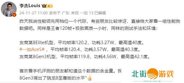 针对网友关心的性能问题,一加总裁李杰也给出了积极的回应。他表示,一加 Ace 5系列将搭载骁龙8Gen3魔改方案,性能相较于同档位机型有着显著的优势,甚至达到了骁龙8至尊版的水平。这一消息无疑为一加 Ace 5系列的性能表现注入了强大的信心。