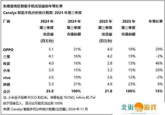 北美、欧洲和中国等成熟市场尽管有所增长,但增速分别仅为1%、0%和4%,市场已接近饱和状态。相比之下,拉美、亚太等新兴市场则呈现出两位数的高速增长,成为智能手机厂商竞相争夺的新战场。在这片蓝海中,中国手机品牌如小米、OPPO、传音和vivo等表现尤为抢眼,它们在新兴市场中不断挤压三星、苹果等国际巨头的市场份额。