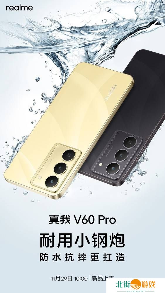 该机后置摄像头模组采用竖排矩阵设计,内含两颗摄像头,虽未透露具体像素信息,但结合其定位,相信能满足日常拍摄需求。真我V60 Pro在设计上的另一大亮点,是其标榜的“耐用小钢炮”定位,以及随之带来的三大重磅升级。