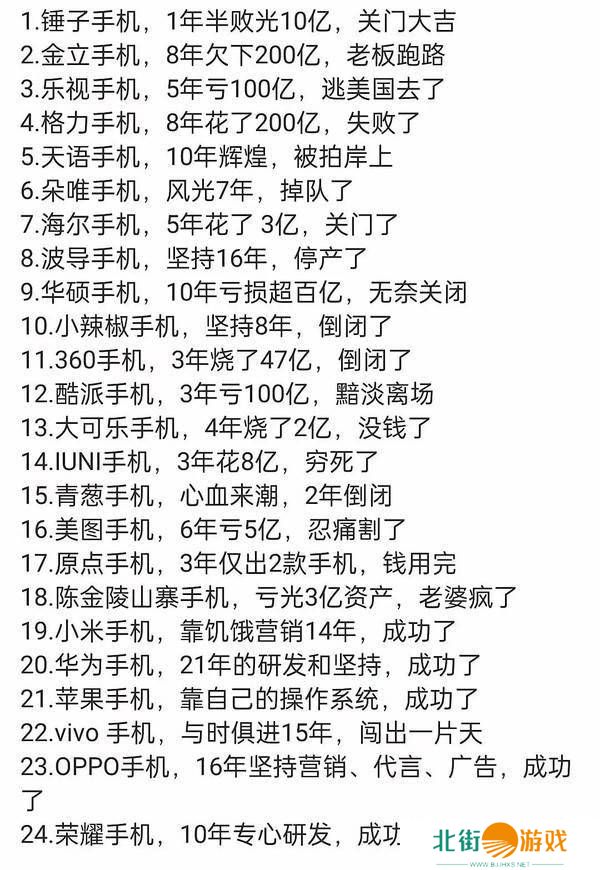 网友们的评论为这份报告增添了几分辛辣与直白。锤子手机被指一年半内耗资十亿,最终无奈关门;金立手**年间累积负债高达二百亿,创始人销声匿迹;乐视手机五年亏损百亿,创始人远走他乡;格力手**年间投入二百亿,却未能如愿以偿;朵唯手机,曾经的七年辉煌,如今却已掉队;波导手机,十六年的坚持,终究难逃停产命运;360手机三年烧光四十七亿,黯然退场;酷派手机三年巨亏百亿,逐渐淡出人们视线;而美图手机,六年亏损五亿后,最终选择将业务出售给小米。
