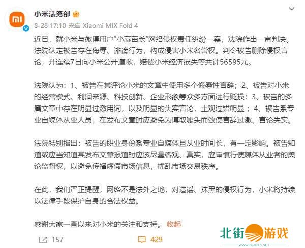 小米官方强调,网络并非法外之地,对于任何造谣、抹黑等侵权行为,小米都将坚决运用法律武器来保护自身的合法权益。这一表态再次表明了小米对于维护公司声誉和合法权益的决心。