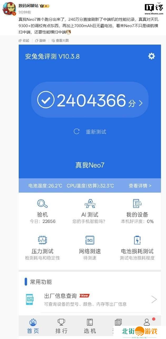 在11月25日,知名数码博主@数码闲聊站率先曝光了真我Neo7的首个跑分成绩——高达240万,这一分数不仅刷新了中端手机的性能记录,也预示着该机将为用户带来前所未有的流畅体验。据悉,真我Neo7将搭载联发科的天玑9300+处理器,并配备了一块容量惊人的7000mAh电池,续航能力堪称“巨无霸”。