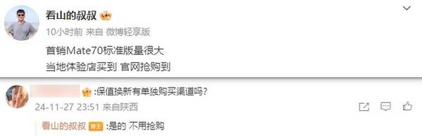 在社交媒体上,有消费者询问前述博主关于保值焕新服务的购买渠道。博主回应称,该服务确实存在,且无需抢购。据华为官网信息,Mate60系列手机用户可以享受保值换购Mate70系列的服务。抵扣金额根据机型和配置不同而有所差异,最低抵扣额为2749.5元(12GB+256GB版Mate60),最高可达6499.5元(Mate60 RS 非凡大师版16GB+1TB版)。