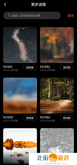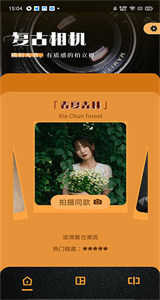 1、打开软件后,用户可以选择拍摄同款,提供了古典之韵、旅行、漫画印象、街头韵味、中华照相馆、春夏森林、黑与白、光效斑点等风格。