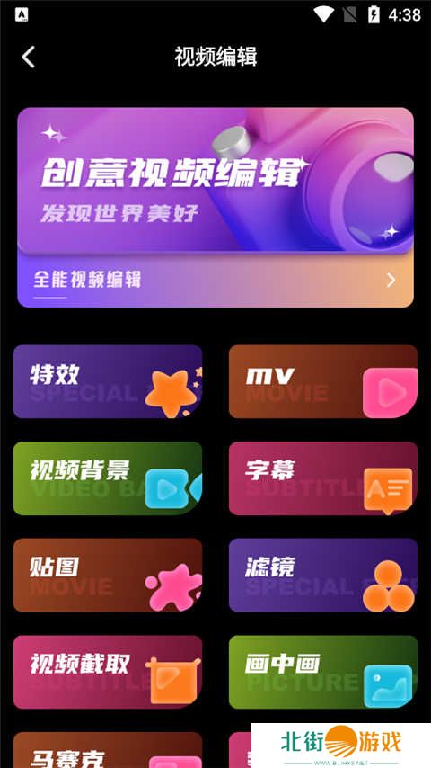 3、视频编辑:特效、MV、视频压缩、字幕、贴图、滤镜、视频截取、封面、倒放、变速等功能。