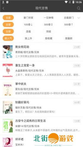 3、选择你喜欢的板块类型,然后可以按照小说章节、人气等进行分类选择。