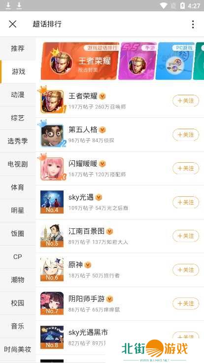 2、在超话中可以看到超话的排行榜,你可以搜索自己喜欢的超话来关注它们。