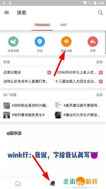 1、首先我们选择探索功能,然后在上方就可以看到超级话题的功能。
