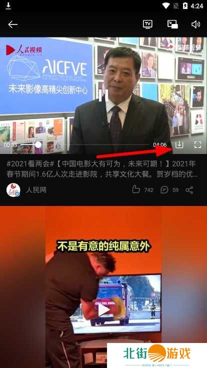 2、然后在视频播放页面的右下角可以看到下载的功能。