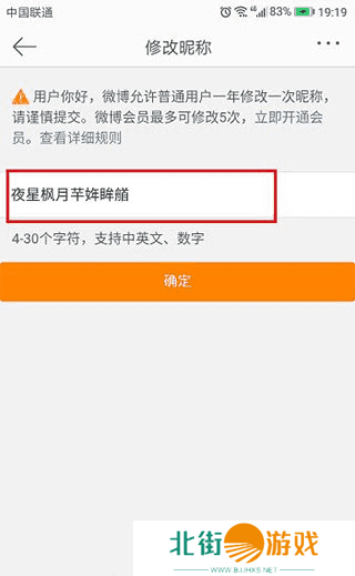 5、进去之后,可以输入想修改的昵称,点击确定。
