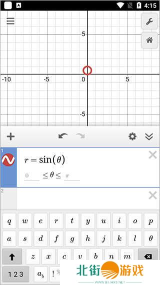 要用到字母输入模式里的θ。如果不用θ,而是其它字母,会被视为非极坐标方程。r=sin(θ)的图像是圆,与x轴切于原点;r=sin(x)或者r=sin(u)代表正弦曲线。