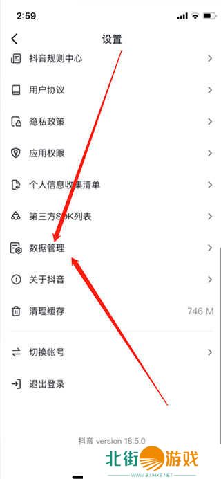 3、进入设置一栏后下滑点击【数据管理】