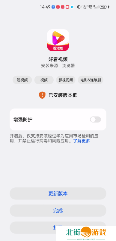 5、最终,出现“已安装版本低”,点击打开,即可体验。