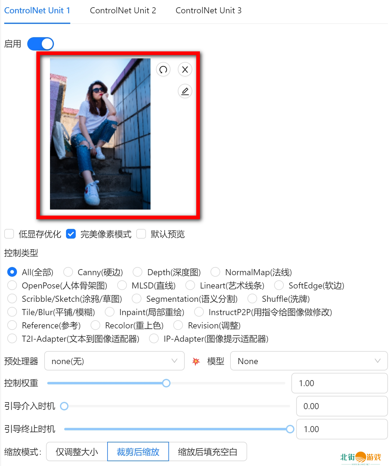 然后选择相应的模型,不能选错了,不然不能正确理解预处理器输出的图像。
