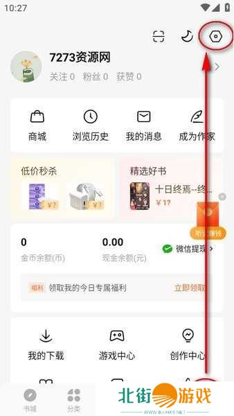 打开番茄小说app后,点击右下角“我的”,并选择右上角的设置按钮;