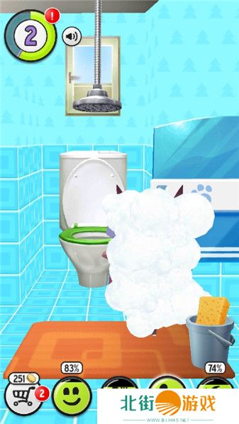 8、然后我们点击上面的莲蓬头,为曼波洗干净。