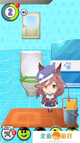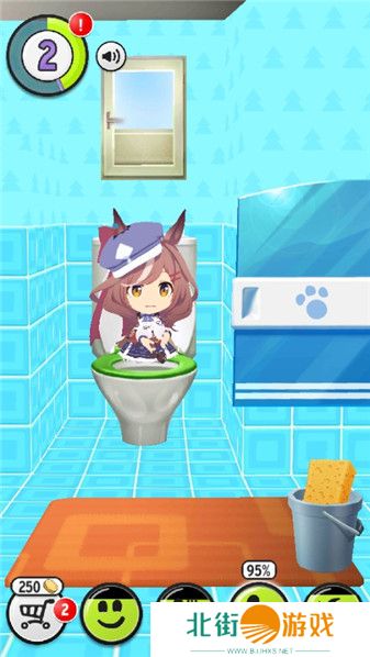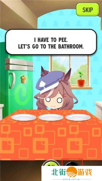 4、我们可以观察一下下面的图标,曼波现在可能会有点想上厕所,我们点击上厕所。