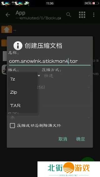 6、打开ZAchiver, 把原来的tar格式的压缩包重命名,复制一下他的名称,之后就可以删掉了,再长按修改后的data文件,选择压缩…格式仍然是tar。