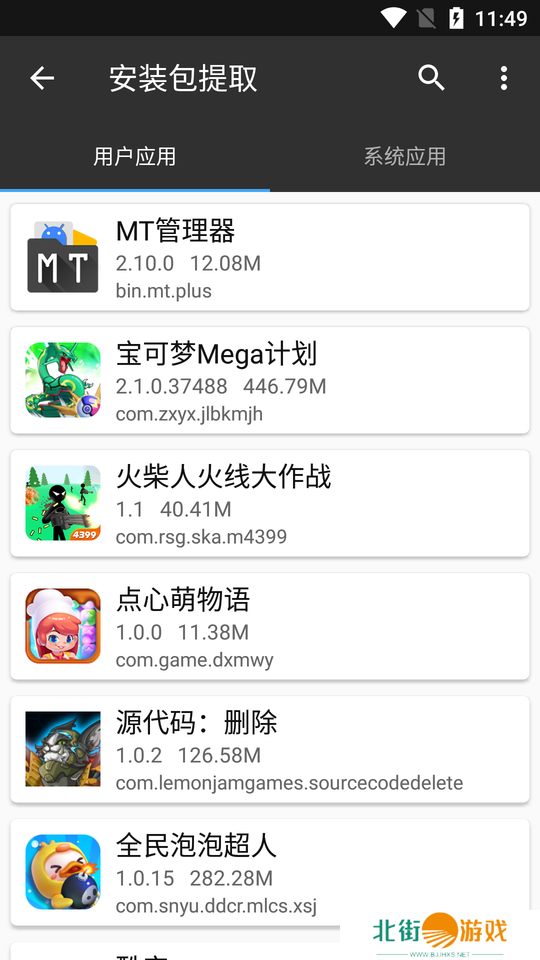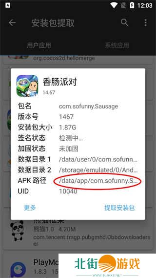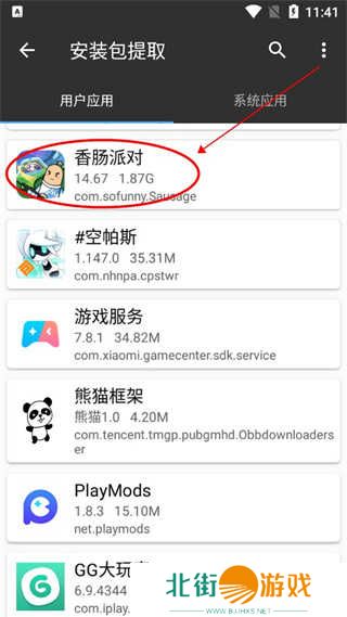 2、找到并点击自己需要提取安装包的游戏(小编以香肠派对为例);