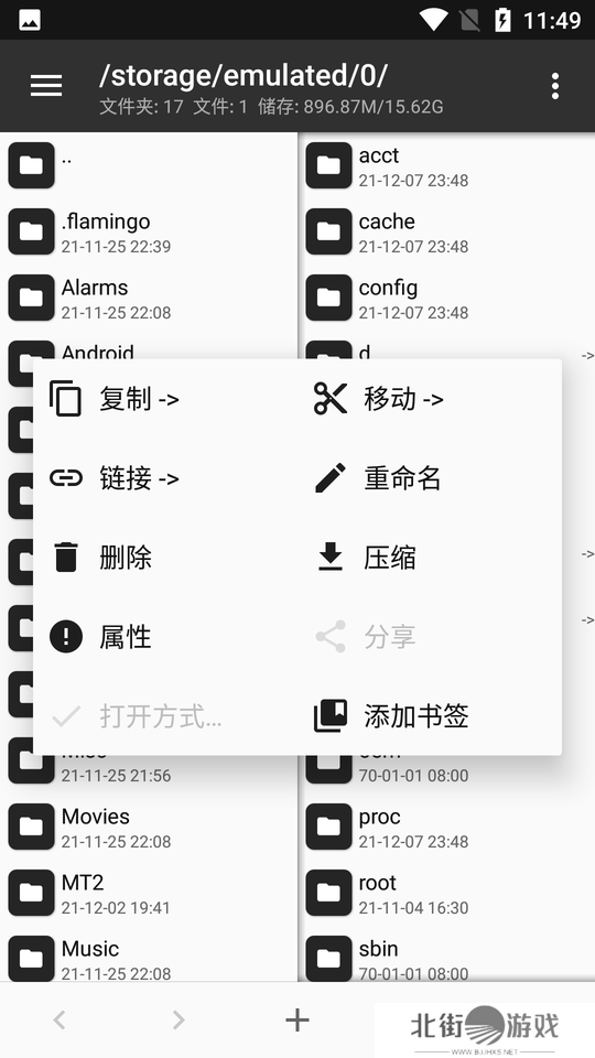 存储、书签:打开侧拉栏,可以看到存储器和书签。点击相应存储器可快速进入根目录、内部存储、外置存储等。书签需要自己添加,注意只有当你添加了书签后,才会在侧拉栏中看到书签分组。