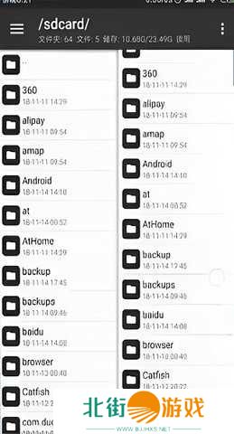 打开 MT 管理器后第一眼看到的就是它的左右两个操作窗口,该设计已经是 MT 的标志之一,与之对应的是双窗口操作模式。如果你是第一次使用,开始会不太适应,但相信我,等你花点时间来熟悉它后,你的操作效率会大大高于使用其它文件管理器。