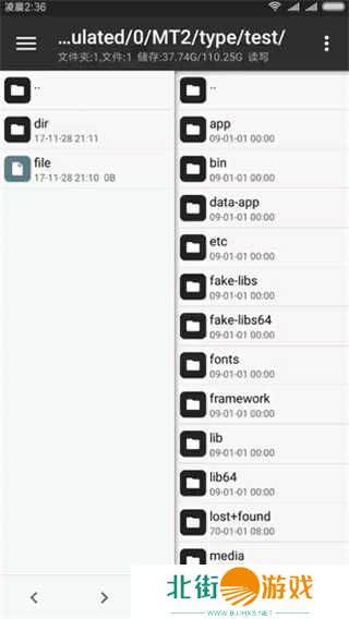 1、打开MT管理器会出现两栏窗口,点击右侧窗口可直接查看文件夹内容。