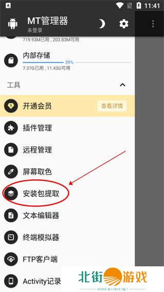 1、打开MT管理器,点击左上角选项并点击安装包提取;
