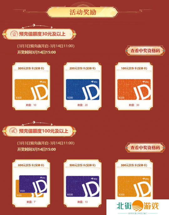 所有阶段的开奖时间均为3月14日15:00。玩家在开奖后登录游戏即可查看自己是否中奖。中奖玩家需在3月21日23:59前填写收件信息,逾期未填写的将视为放弃奖励。奖励将在地址填写时间结束后15个工作日内发放。
