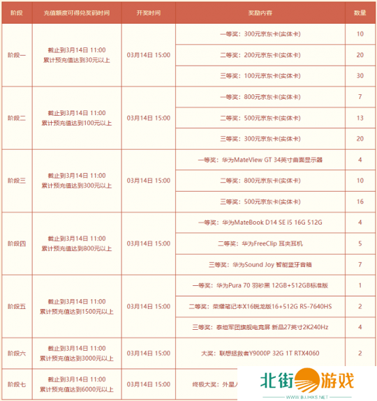 本次预充值大派送活动共分为七个阶段,每个阶段都有不同的奖励,且随着充值额度的提高,奖励也愈发丰厚。以下是各阶段的奖励详情: