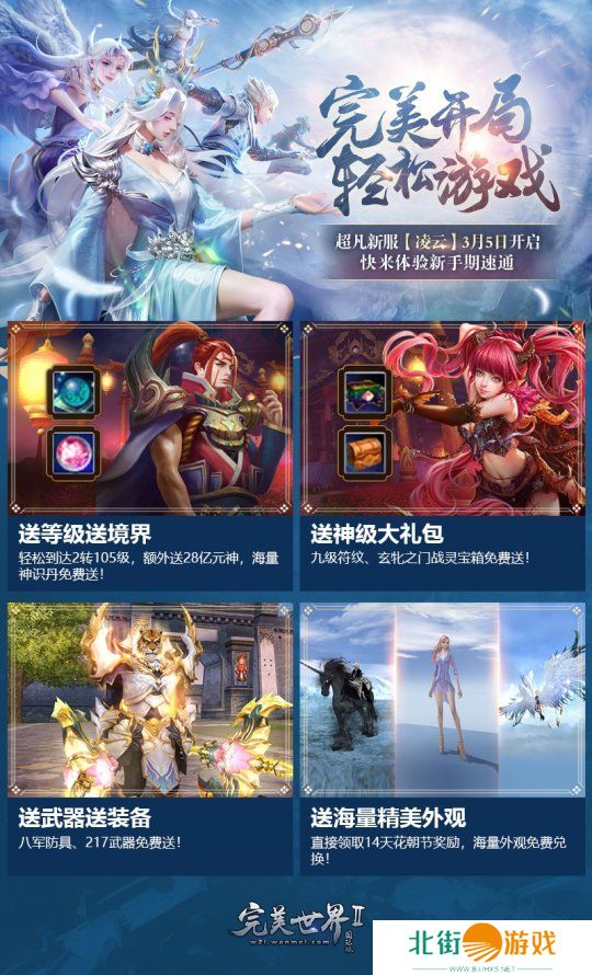 凌云破空,共赴新程。《完美国际2》超凡新服“凌云”今日正式开启。本次超凡新服“凌云”将带来史无前例的成长加速计划,不仅送等级、送境界、送装备,还有九级符纹、玄牝之门战灵宝箱直接送到修行者手中,助你速通新手期,畅玩副本,激情开战!