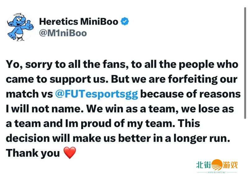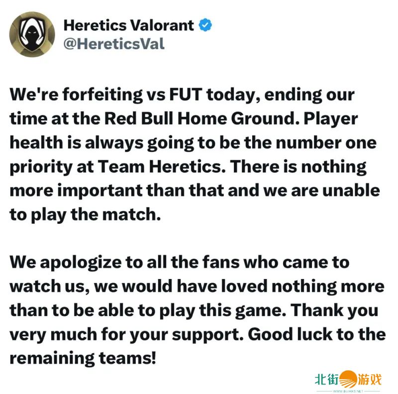 Heretics战队宣布因队内情况不得不放弃与FUT Esports的比赛,这也标志着他们在红牛杯赛事中的征程提前结束。