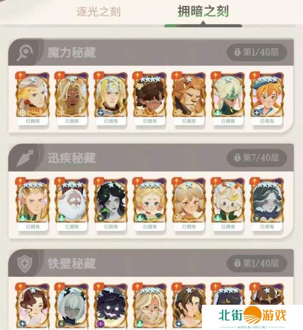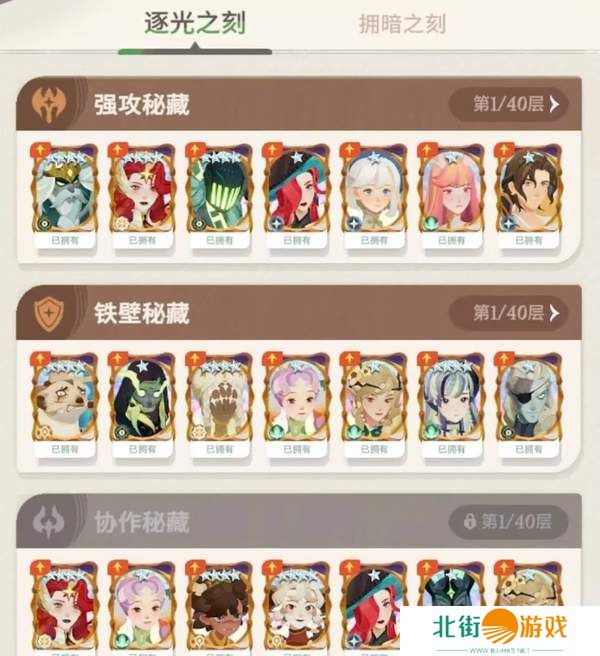 每个秘藏内都会有不同的英雄加成,有的英雄会出现在多个场景中
