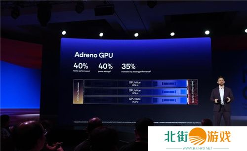 具体来看全新Adreno?GPU的切片架构,其内部渲染单元由三个频率为1.1GHz的独立GPU切片组成,每个切片都可以独立运行在对应的主频,因此可以根据负载动态调配资源,实现GPU能效提升。
