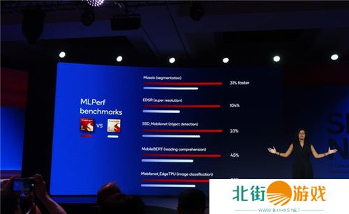 与上代相比,骁龙8至尊版的NPU性能提升了45%,能效也有45%的提升。综合AI性能方面,通过MLPerf?BenchMarks测试,对比第三代骁龙8,骁龙8至尊版提升更是最高达到104%(EDSR超分)。