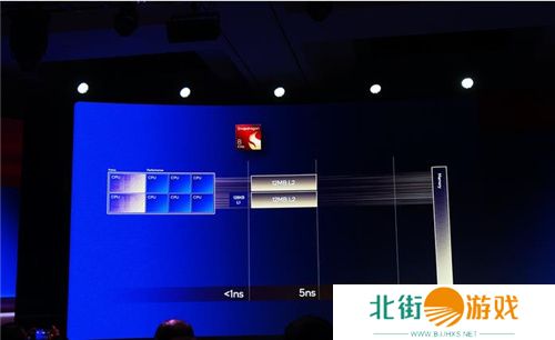 缓存容量提升,提高数据传输效率的同时高通也对延迟进行优化,L1缓存延时小于1ns,L2缓存延时也控制在5ns以内。