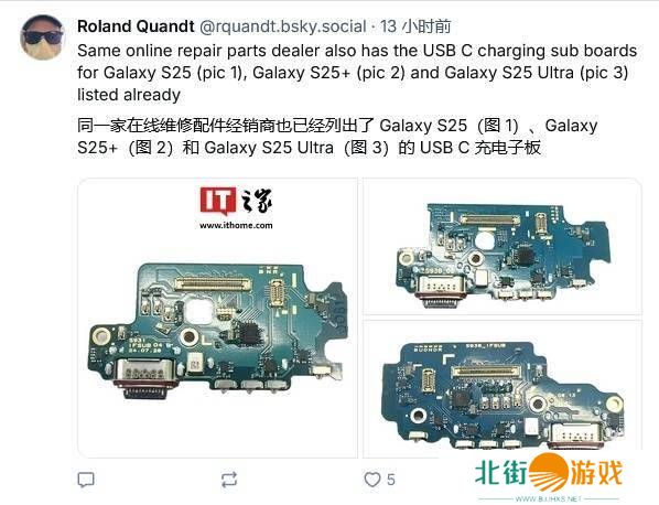 值得注意的是,除了色彩上的多样选择,Roland Quandt还分享了三星Galaxy S25、Galaxy S25+以及旗舰级的Galaxy S25 Ultra三款手机的USB-C充电电路板图片。这一细节曝光,无疑进一步揭示了新机在硬件设计上的创新与用心。